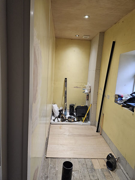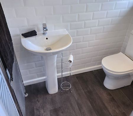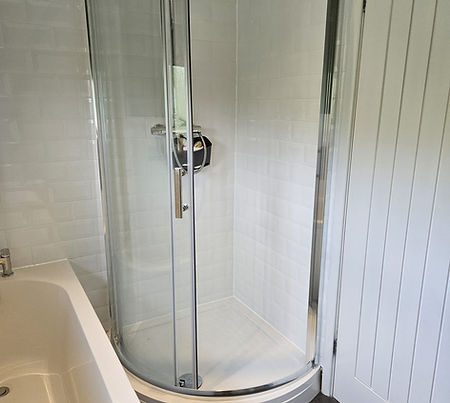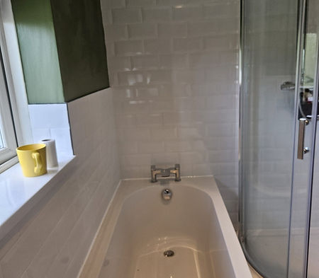 July 2025 - replacement of shower, re-tile and paint. Bathroom in Luddenden Village, West Yorkshire.